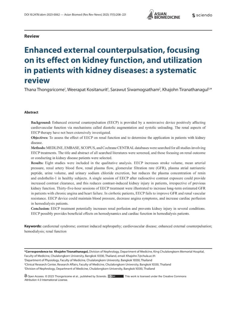 “Enhanced External Counterpulsation, Focusing on Its Effect on Kidney Function, and Utilization in Patients with Kidney Diseases: A Systematic Review” adalah sebuah tinjauan sistematik yang mengevaluasi efek Enhanced External Counterpulsation (EECP) terhadap fungsi ginjal dan bagaimana EECP dapat digunakan pada pasien dengan penyakit ginjal.